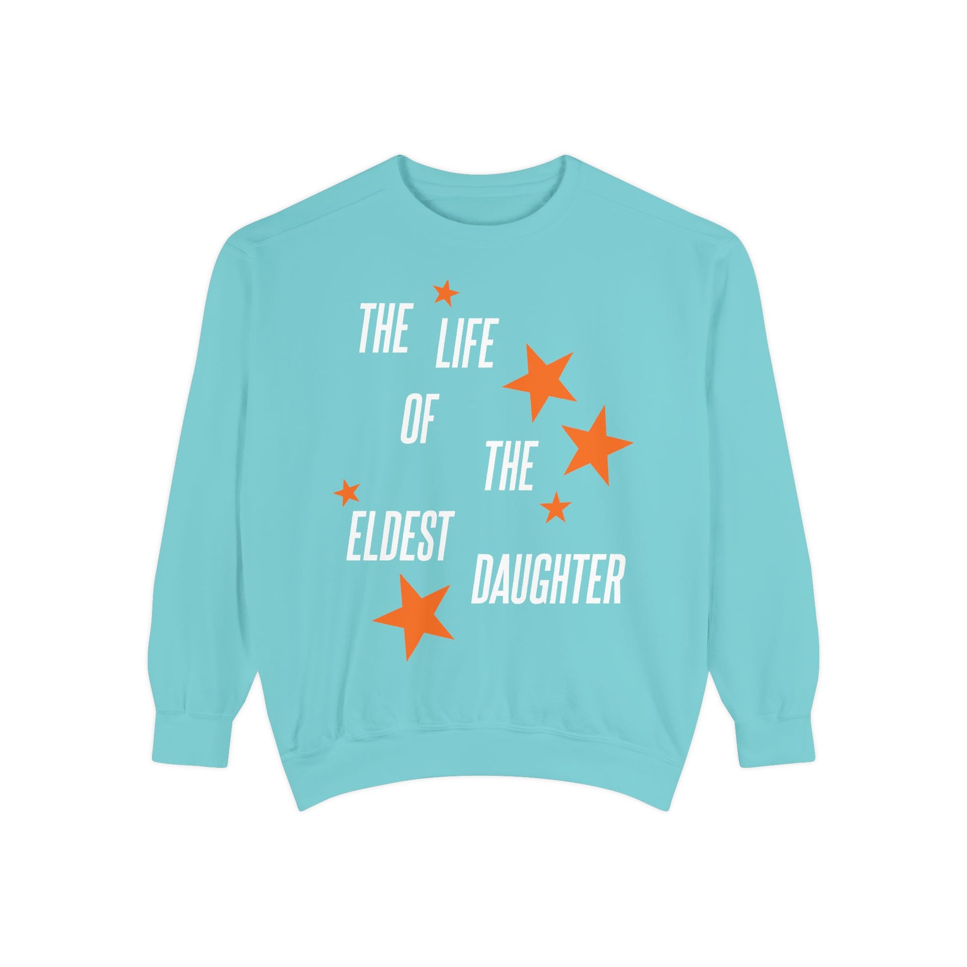 design is printed on a comfort colors crewneck